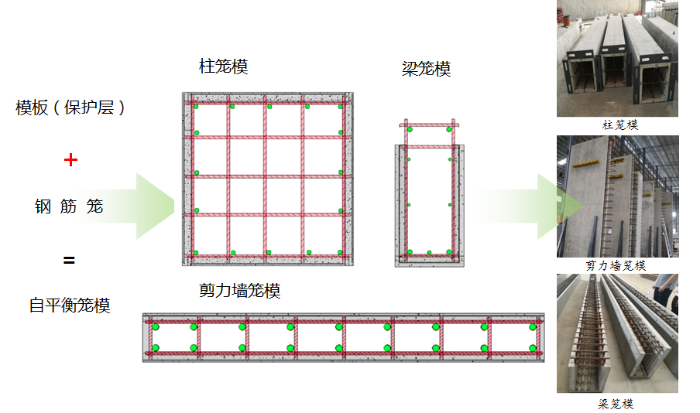 免模裝配一體化鋼筋混凝土結(jié)構(gòu)體系(簡稱PI體系),是在工廠將結(jié)構(gòu)構(gòu)件模板與鋼筋籠一體化制作成為自平衡的籠模預(yù)制件,在工地現(xiàn)場完成吊裝,一次性澆筑混凝土而形成的混凝土結(jié)構(gòu)。一體化的鋼筋籠模板通過自平衡體系承受施工荷載,大幅簡化施工支撐,模板采用與結(jié)構(gòu)同強(qiáng)度等級鋼筋混凝土薄板,施工完成后不拆除,與主體結(jié)構(gòu)成為一體。