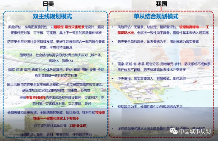 通過梳理國際空間規(guī)劃防災(zāi)方面的經(jīng)驗(yàn),并與日本和美國規(guī)劃方式進(jìn)行對比,馬教授提出以下三點(diǎn)可借鑒的經(jīng)驗(yàn)。