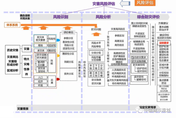第五,積極探索當(dāng)前規(guī)劃改革背景下的防災(zāi)韌性規(guī)劃路線。首先,科學(xué)認(rèn)知方面,要依據(jù)多水準(zhǔn)災(zāi)害危險(xiǎn)性評估和規(guī)劃要素危害性識(shí),認(rèn)知和判別災(zāi)害致災(zāi)風(fēng)險(xiǎn)區(qū),控制和消除國土規(guī)劃要素(承災(zāi)體易損性或后果嚴(yán)重性)造成的災(zāi)害風(fēng)險(xiǎn)區(qū)。以災(zāi)害致災(zāi)風(fēng)險(xiǎn)區(qū)為核心風(fēng)險(xiǎn)防治要素,防災(zāi)設(shè)施和防災(zāi)空間為核心效能要素,防災(zāi)控制線為核心管制要素,災(zāi)害重點(diǎn)防御區(qū)和災(zāi)害重點(diǎn)防御工程為核心治理要素,形成國土空間設(shè)防、布局、管制和綜合防災(zāi)系統(tǒng)。第二,系統(tǒng)治理方面,強(qiáng)調(diào)整體協(xié)同,全周期發(fā)力,通過多部門與主體共同實(shí)施全過程系統(tǒng)治理,滿足多水準(zhǔn)、全階段的要求和設(shè)防標(biāo)準(zhǔn)。第三,提質(zhì)增效方面,要穩(wěn)固基礎(chǔ),優(yōu)化增量,形成剛性、彈性和韌性相配合的空間安全秩序。