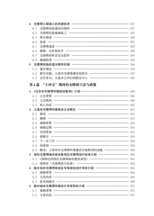 教材介紹了當前我國各地在“十四五”期間無障礙相關(guān)地方立法、政策和標準的最新進展,選取北京、上海、深圳、哈爾濱、嘉興為例,對近兩年來地方上無障礙立法和標準導則進行了系統(tǒng)、全面的介紹,闡述了各地的優(yōu)秀經(jīng)驗和做法。