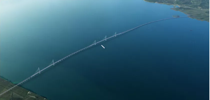 海域段長度約15公里,跨海段設(shè)置2座主橋,其中黃茅海大橋跨越東航道和西航道,采用三塔斜拉橋設(shè)計,主跨2*720米,建成后將成為世界上跨徑最大的三塔斜拉橋。主塔采用國內(nèi)罕見的獨(dú)柱式結(jié)構(gòu),設(shè)置五座主塔,設(shè)計上融入了景觀理念,外形動感柔美、標(biāo)志性突出。為應(yīng)對海上的極端環(huán)境,項目融入平安百年品質(zhì)工程理念。工廠化制造、機(jī)械化施工、裝配式安裝等現(xiàn)代建造技術(shù)將被采用,并建立區(qū)域性多災(zāi)害預(yù)警系統(tǒng)。