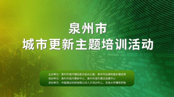 10月23日-10月27日,由泉州市城市建設(shè)委員會辦公室和泉州市住房和城鄉(xiāng)建設(shè)局主辦,泉州市城市更新中心和泉州市城市建設(shè)發(fā)展中心協(xié)辦,中國建設(shè)科技有限公司人才培訓(xùn)中心和東南大學(xué)建筑學(xué)院承辦的泉州市城市更新主題培訓(xùn)班于南京市圓滿結(jié)束!