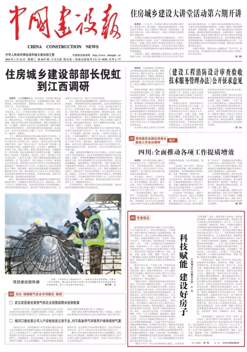 1月16日,中國(guó)建設(shè)報(bào)頭版刊發(fā)中國(guó)建科黨委副書(shū)記、總裁孫英的署名文章《科技賦能 建設(shè)好房子》,以“四化”理念推動(dòng)建設(shè)好房子。