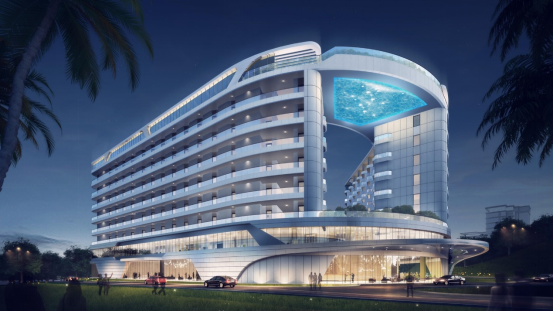 由華森公司設(shè)計(jì)的深圳彭年企業(yè)家俱樂部度假村酒店依山傍海,自然生成一條從城市到大海的景觀步道 ,西側(cè)山體公園環(huán)抱基地,就像一扇綠色的大門將城市與基地分隔開,形成了高低起伏的地勢(shì)。結(jié)合外部道路的標(biāo)高,從銀灘路進(jìn)入口后,上行一段路程,可遠(yuǎn)觀本項(xiàng)目標(biāo)志性建筑酒店。經(jīng)過酒店區(qū)域后,通過清幽寧靜的“森林隧道”,進(jìn)入到環(huán)境清幽的專家公寓區(qū),營(yíng)造了世外桃源般的氛圍,打造品質(zhì)型度假休閑規(guī)劃。