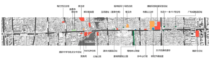 更新設(shè)計(jì)的邊界沒有停留在道路兩側(cè)的建筑外立面,而是往兩側(cè)各延伸了50米,將玉河遺址、南鑼鼓巷入口等很多歷史文化節(jié)點(diǎn)空間囊括在內(nèi),同時(shí)活化利用了文化古跡場所,更好展示了街道自身的歷史文化特點(diǎn)。