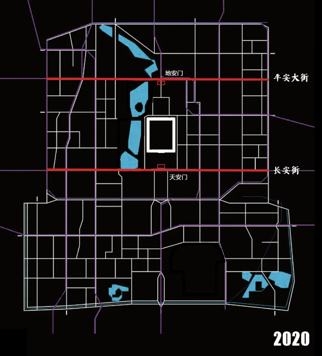 ▲自元代至今,平安大街區(qū)域的城市肌理變遷