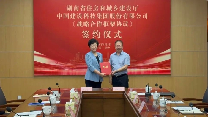 6月5日,中國建科與湖南省住房和城鄉(xiāng)建設(shè)廳在長沙簽署戰(zhàn)略合作框架協(xié)議。中國建科黨委副書記、總裁孫英和湖南省住房和城鄉(xiāng)建設(shè)廳黨組書記、廳長唐道明出席簽約儀式并進行座談交流。